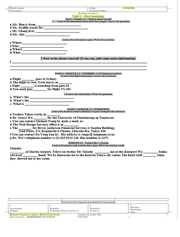 And an emailed form to be typed, edited and spell checked and emailed back to the teacher.