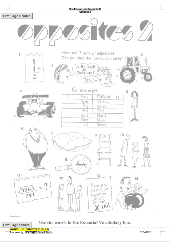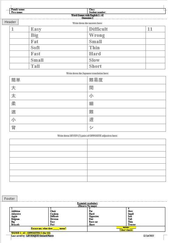 The students’ Answer page (CAN serve as the basis of a Homework).