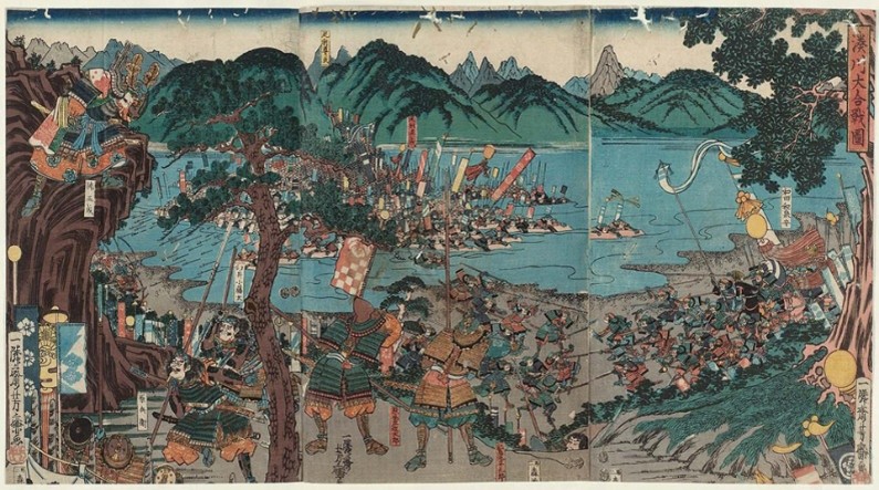 At the Battle of Minatogawa on July 4, 1336, his prediction came true. As he engaged Ashikaga Takauji’s main force from the west, Ashikaga Tadayoshi landed behind him, attacking from the rear. Surrounded and with his army annihilated, Masashige performed seppuku (ritual suicide) with his brother, Masasue, and 60 of his closest clansmen .